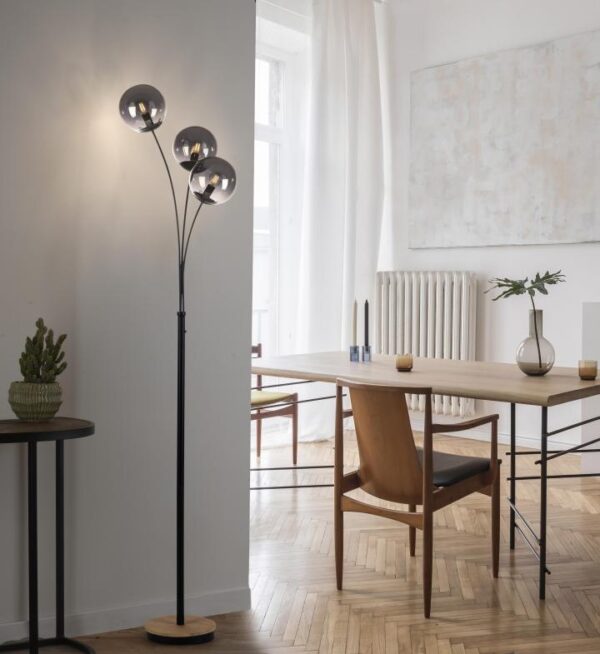 Vloerlamp Esmee mat zwart met gouden ring en leesarm
