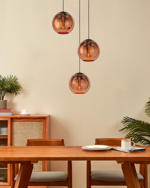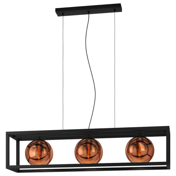 Hanglamp Carlton 3Lichts Zwart/Koper