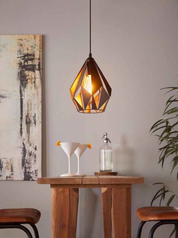 Hanglamp Carlton 1Lichts Zwart/Koper 20 cm