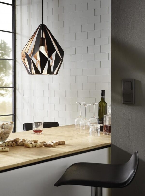 Hanglamp Carlton 1Lichts Zwart/Koper 31 cm