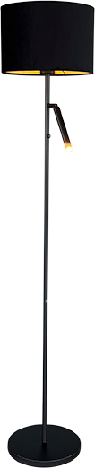 Vloerlamp Flute 2lichts mat zwart/mat zwart met Falcon zwarte kap
