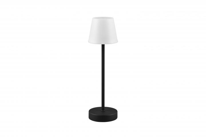 Speelse en moderne tafellamp voor buiten. Maak uw (voor)tuin, balkon of patio gezellig en sfeervol met deze tafellamp Martinez van Trio. Deze tafellamp heeft een mooie mat zwarte kleur en is gemaakt van kunststof. Deze lamp beschikt over een touch stappendimmer. De tafellamp kan ingesteld worden in 4 verschillende niveaus. Daarnaast werkt de tafellamp op batterijen en deze zijn oplaadbaar.