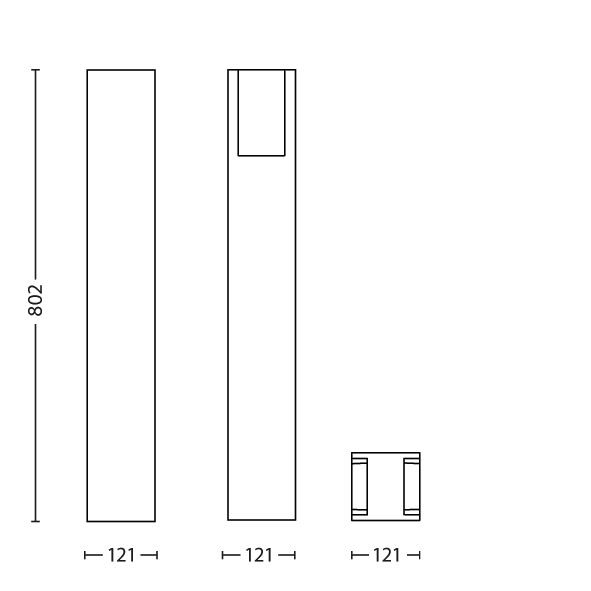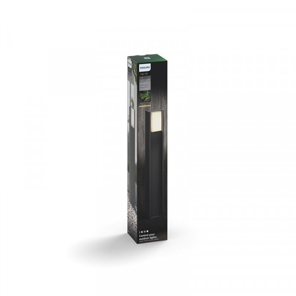 De lamp is gemaakt van aluminium en hoogwaardige synthetische materialen. De lamp is 80,2cm hoog en 12,1cm breed en diep. In de lamp zit een Hue White lichtbron van 9,5Watt met een maximale lichtopbrengst van 806Lm. De IP-waarde is IP-44.