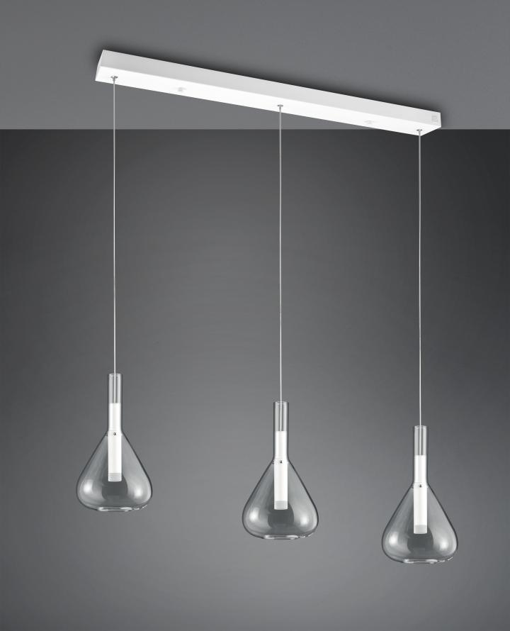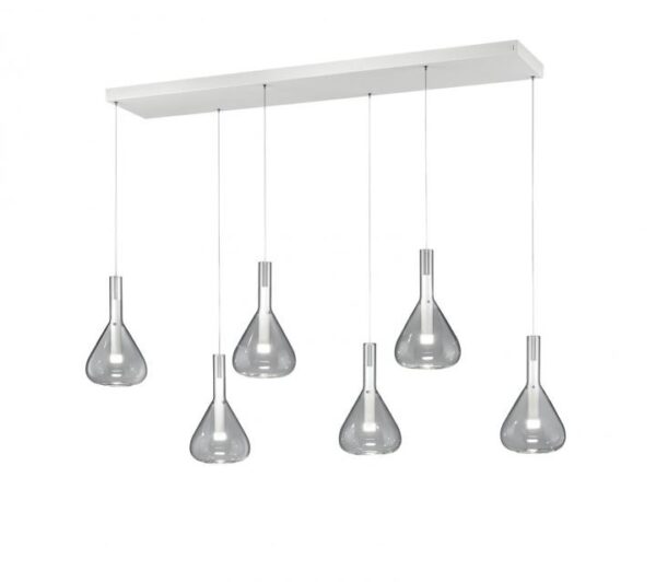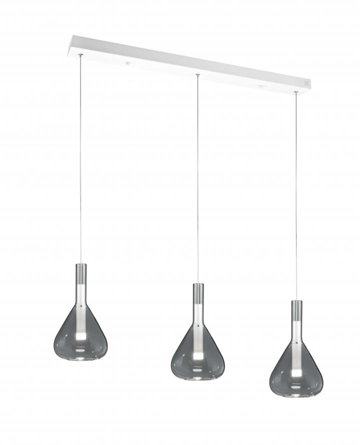 De schitterende hanglamp uit de Cipera serie van Cinque heeft een minimalistisch design. Deze glazen lamp bestaat uit een ophanging met 3 lichtpunten van transparant helder glas, dit geeft een mooi egaal lichteffect. De ophanging is uitgevoerd in metaal en afgewerkt in een mooi mat witte kleur, ook verkrijgbaar in de kleur mat zwart met smoke glas.