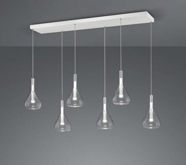 De glazen van de plafondlamp hebben elk een diameter van 20 cm en verstelbare hoogte van maximum 200 cm. De lamp is voorzien van een geïntegreerde SMD LED van 4,5 Watt, 2000 tot 4000K.