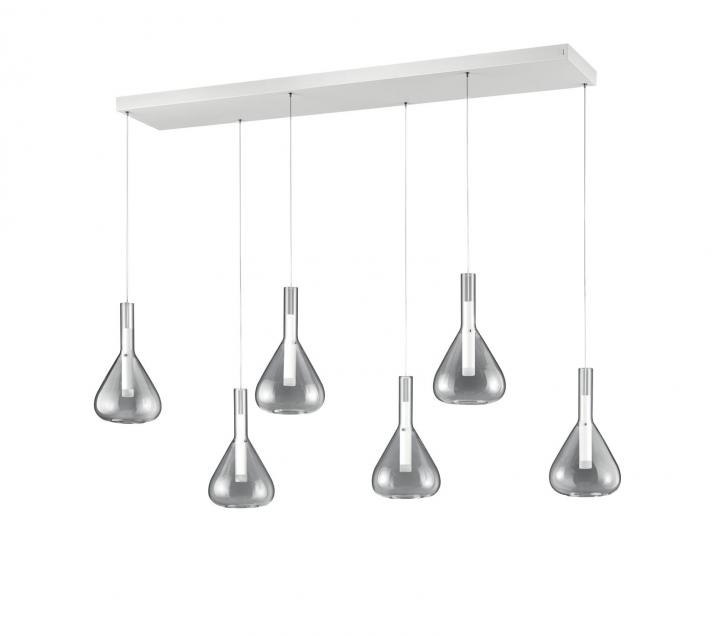 De schitterende hanglamp uit de Cipera serie van Cinque heeft een minimalistisch design. Deze glazen lamp bestaat uit een ophanging met 6 lichtpunten van transparant helder glas, dit geeft een mooi egaal lichteffect. De ophanging is uitgevoerd in metaal en afgewerkt in een mooi mat witte kleur, ook verkrijgbaar in de kleur mat zwart met smoke glas.