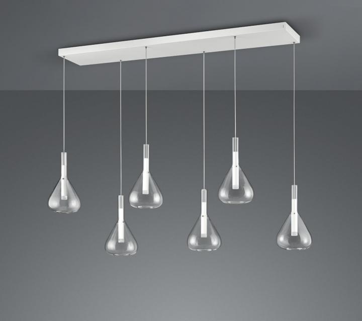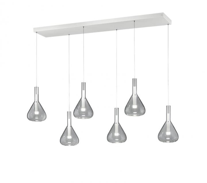 De schitterende hanglamp uit de Cipera serie van Cinque heeft een minimalistisch design. Deze glazen lamp bestaat uit een ophanging met 6 lichtpunten van transparant helder glas, dit geeft een mooi egaal lichteffect.