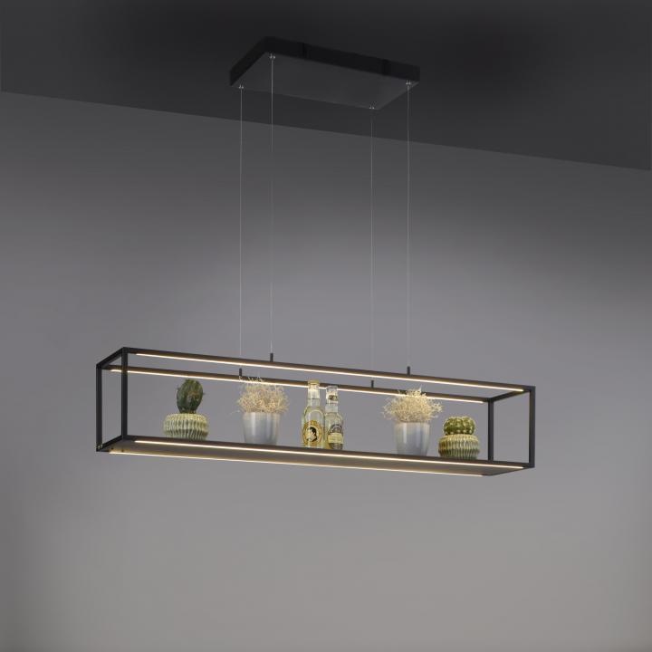 De lamp is voorzien van 4 LED strips van 8 W en heeft een lichtopbrengst van 3840 Lumen en een lichtkleur van 3000 Kelvin. Met de geïntegreerde touchdimmer kun je de lamp in drie stappen dimmen om de lichtintensiteit aan te passen aan elke stemming en situatie. Via de geheugenfunctie wordt de laatste lichtinstelling opgeslagen.