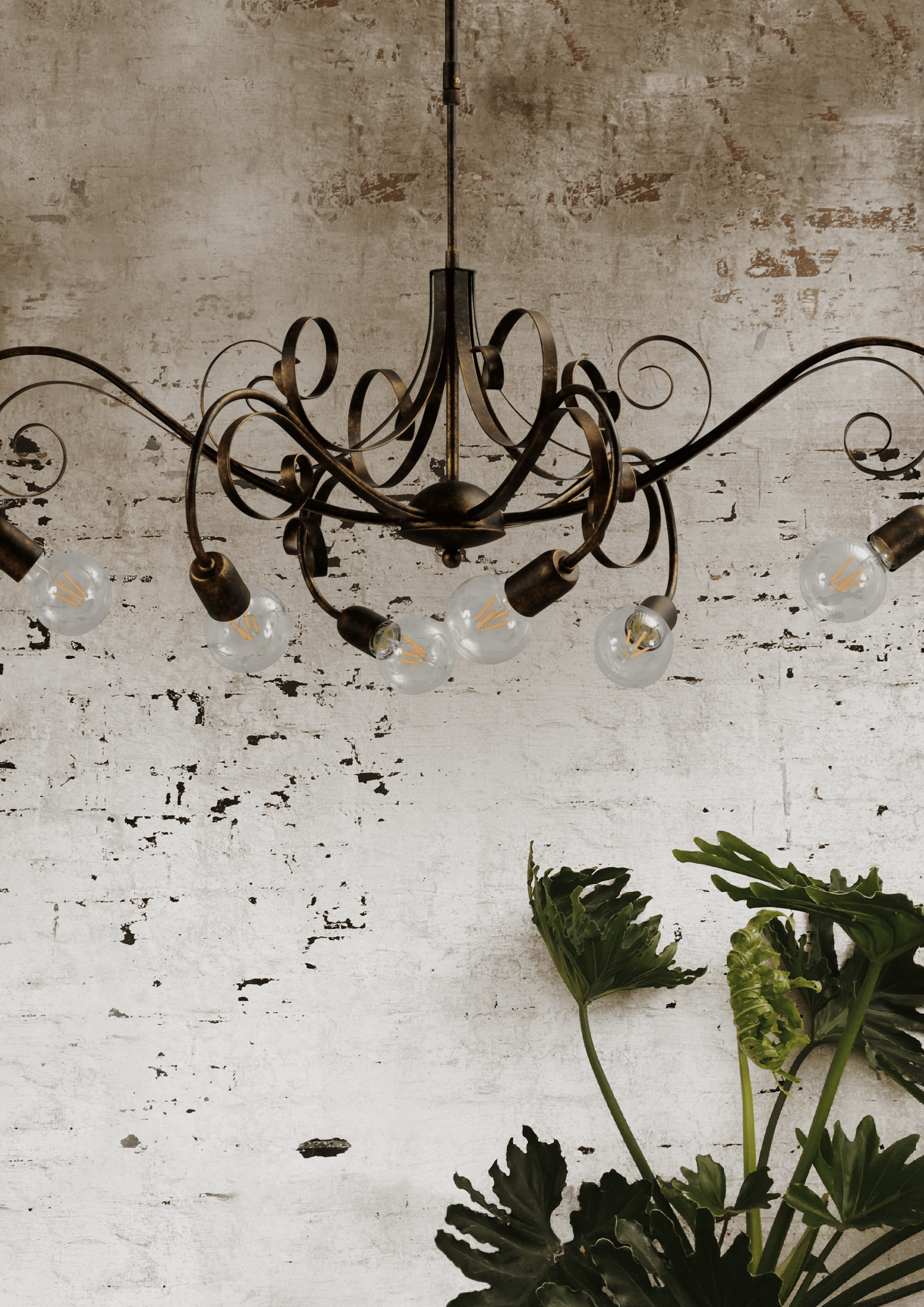 Door de sierlijke vormen is de hanglamp een eyecatcher in u woning. Het bijzondere van de Curlie serie is dat elk armatuur met de hand wordt gepatineerd waardoor elke lamp uniek is.