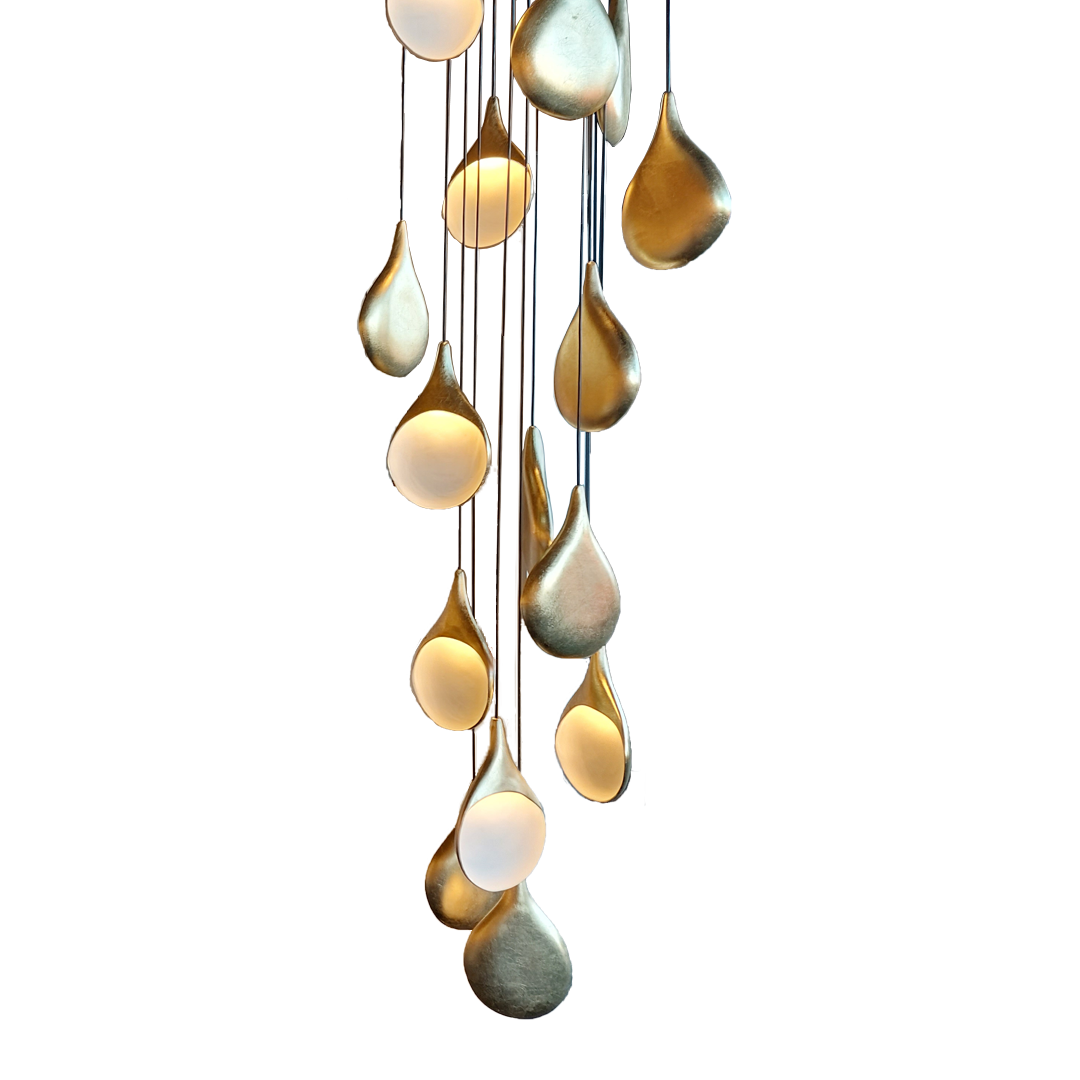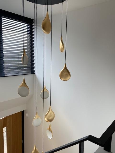 Dit elegante ontwerp is uitstekend geschikt voor grote vides hoge ruimtes. Wanneer de Fines de Claires in een vide als een cluster wordt gepresenteerd, verbind hij de verschillende etages tot 1 spannende ruimte.
