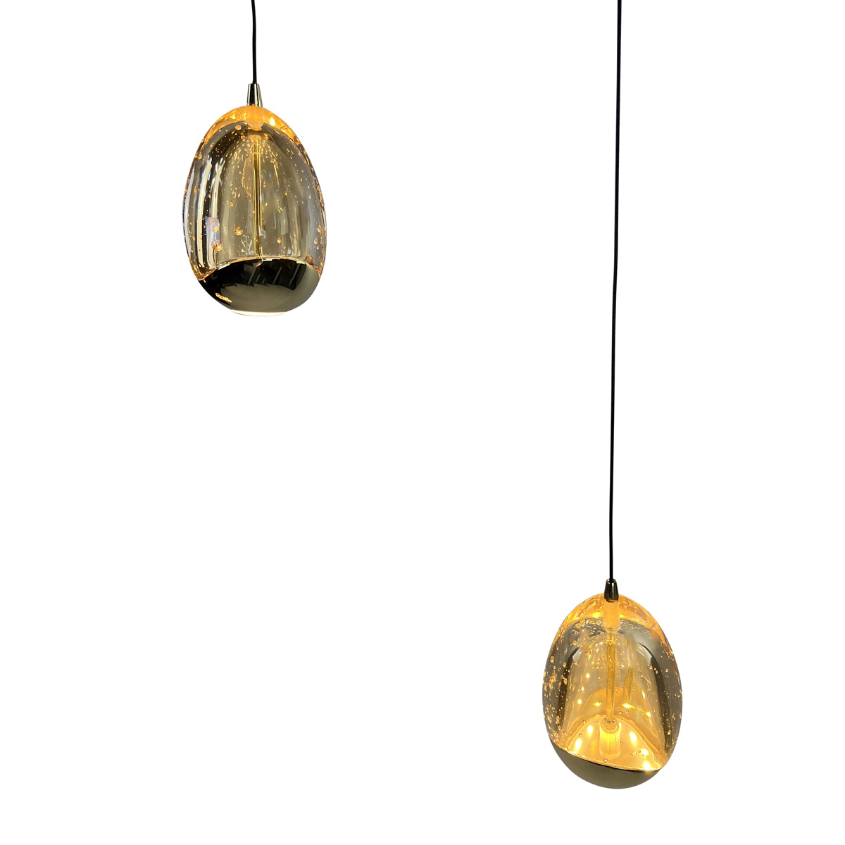 Schitterende hanglamp uit de Golden Egg serie van Highlight. Deze unieke hanglamp is gemaakt van een zwarte ophanging met mooie gouden eieren met een schitterende LED lichtbron erin verwerkt.