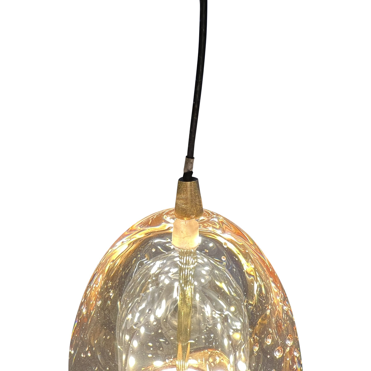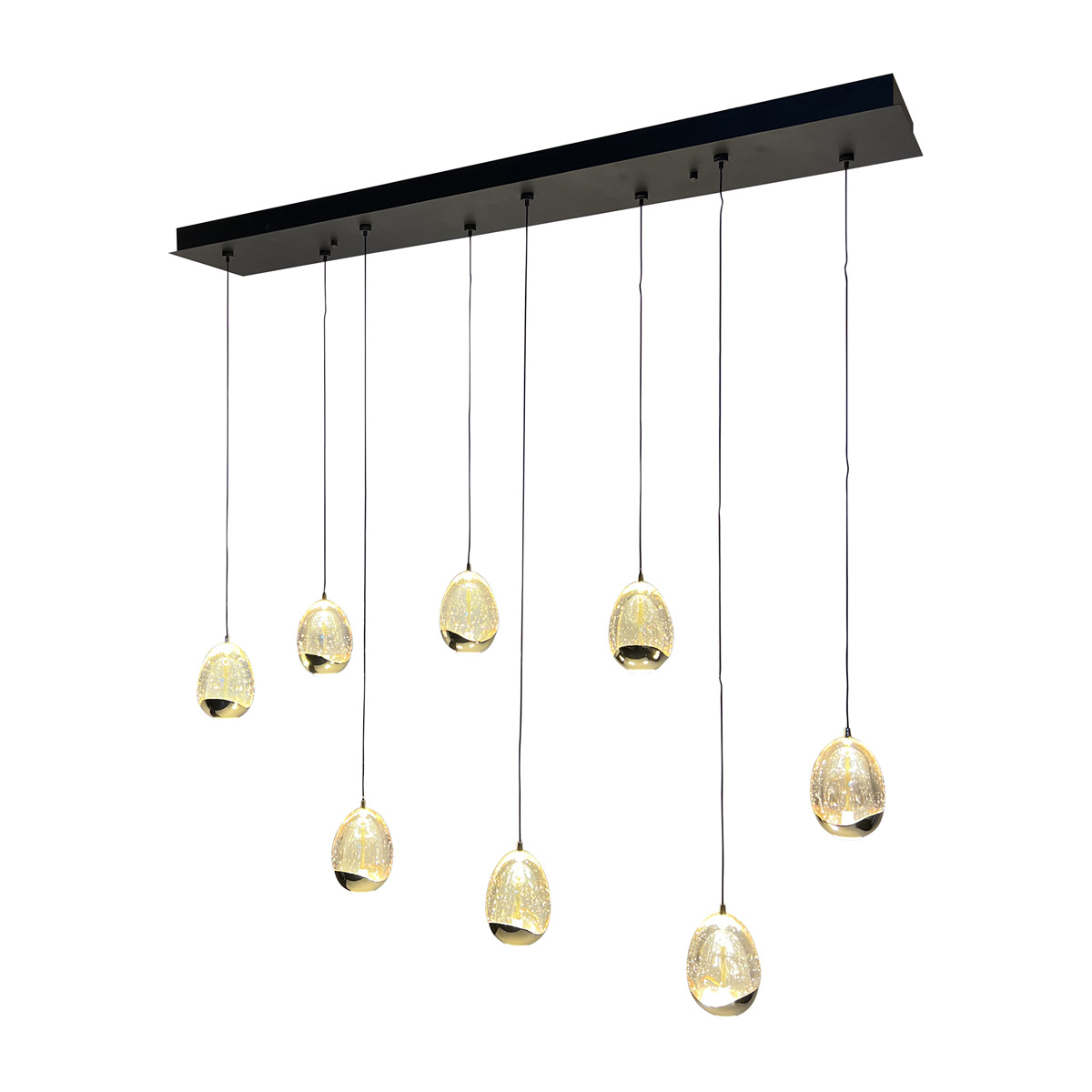 Schitterende en imposante hanglamp uit de Egg serie van Highlight. Deze unieke hanglamp is gemaakt van een zwarte ophanging met mooie gouden glazen eieren met een schitterende LED lichtbron erin verwerkt.