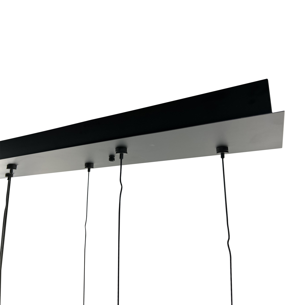 De lamp is in hoogte verstelbaar tot een maximum van 150 cm. De lamp heeft een lengte van 115 cm en is 18 cm breed. De lamp is voorzien van 8 geïntegreerde LED lichtbronnen van ieder 5 Watt, 3600 Lumen en 2700 Kelvin. De lamp is dimbaar middels een externe dimmer (exclusief).