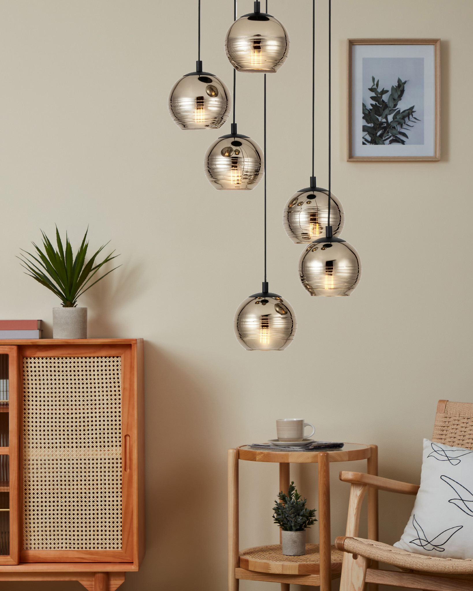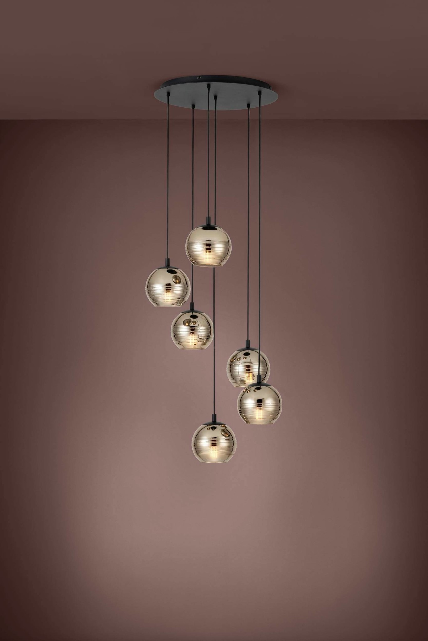 Hanglamp Lemorieta 6lichts Zwart met goudkleurig glas