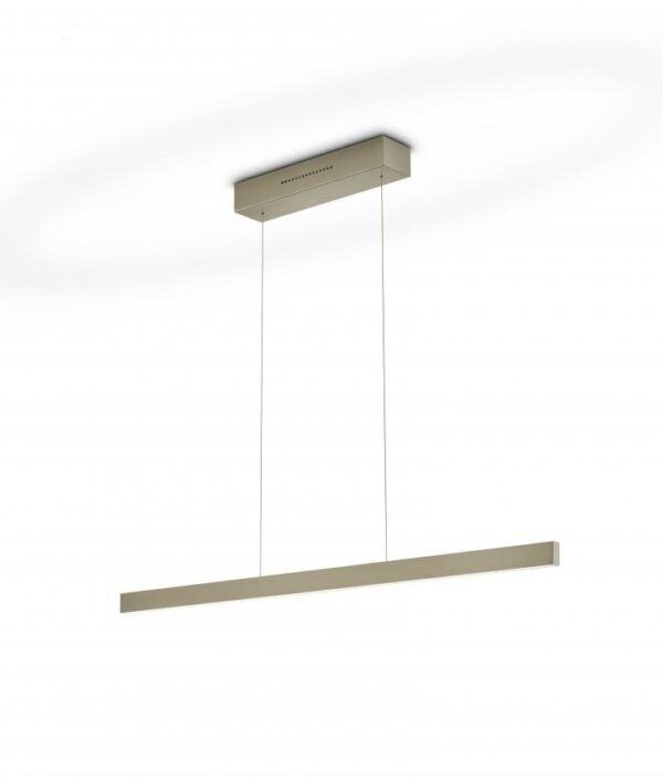 De hanglamp heeft twee geïntegreerde energiezuinige LED lichtbronnen met een totaal wattage vermogen van 72 Watt en straalt een aangename warmwitlicht (2200K) tot aan helder witlicht (3000K) uit met een lichtopbrengst van 8580 Lm aan het plafond en in de ruimte. De hanglamp heeft een lengte van 152 cm en een verstelbare hoogte van 73 cm tot een maximale hoogte van 180 cm. De plafondbevestiging is 5,5 cm hoog en 40 cm lang. De plafondmontage ziet er schoon en strak uit met behulp van de magnetische bevestiging en zorgt voor geen zichtbare schroeven in de plafondplaat. Het balkframe van de lamp is 1,6 cm dik bij 3,4 cm hoog.