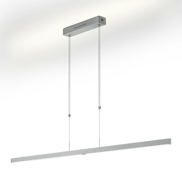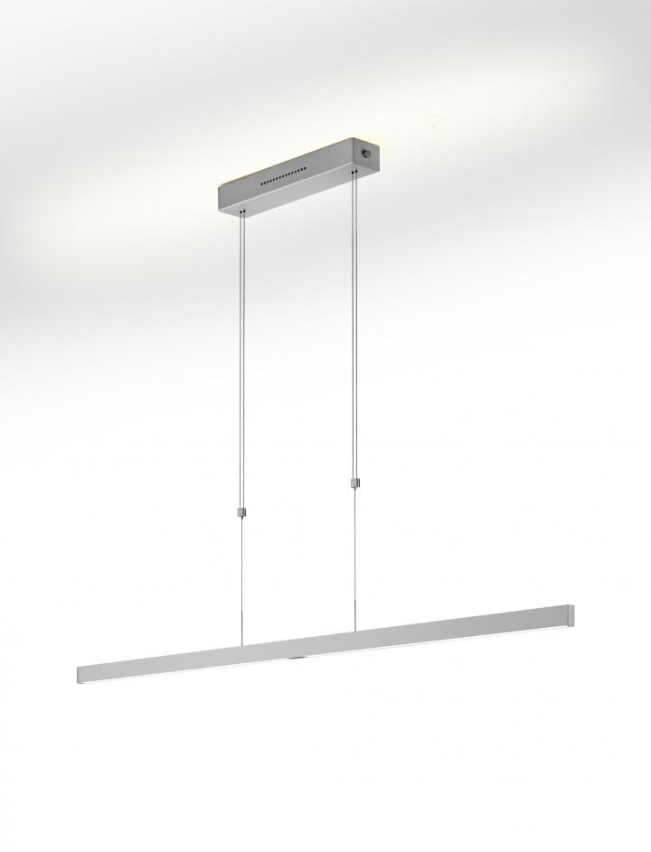 De lamp heeft een prachtige mat nikkel kleur en is voorzien van een lichtbalk van 95 cm lang. De hoogte van de lamp is verstelbaar van 106 cm tot max. 188 cm, welke door middel van de pendel zeer eenvoudig is aan te passen. De plafondbevestiging is 5,5 cm hoog en 25 cm lang. Het frame van de lamp is 1,6 cm dik bij 3,4 cm hoog.De lamp heeft twee geïntegreerde LED modules van totaal 29 Watt, geeft een warm witte kleur van 2700K en een lichtopbrengst van 3307 Lumen. De CRI waarde ligt zelfs boven de 90.