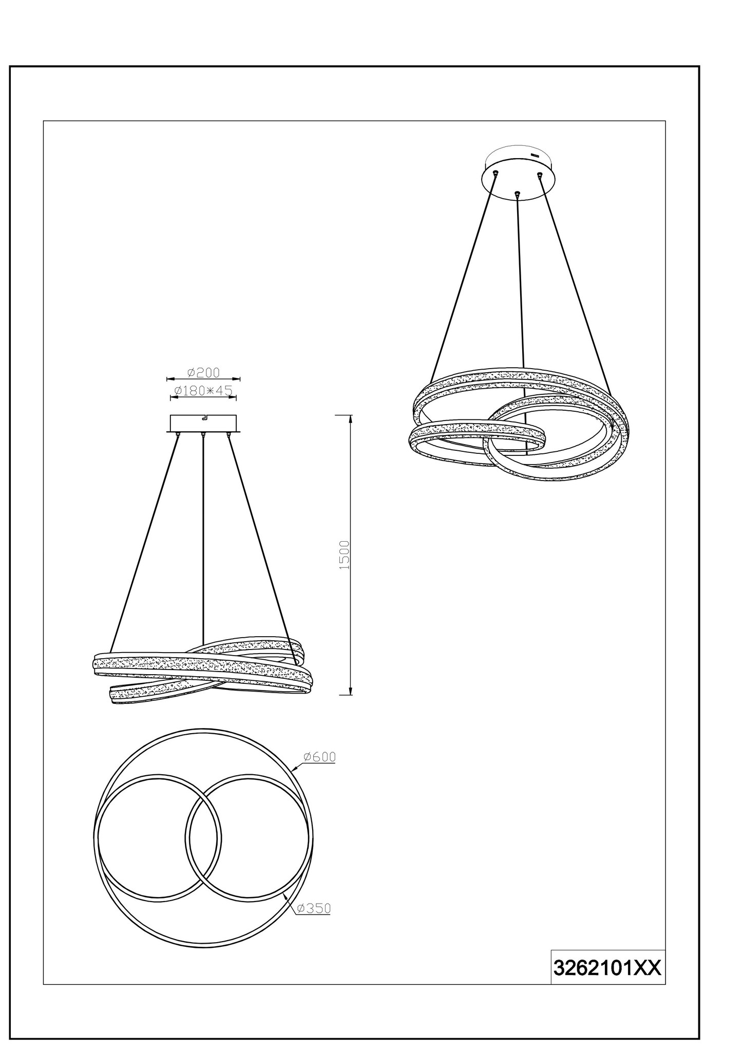 De hanglamp is in hoogte te verstellen tot maximaal 150 cm en heeft een diameter van 59 cm. De lamp wordt geleverd inclusief geïntegreerde LED lichtbron van 60 Watt, 7200 Lumen en instelbaar van 2300, 3000 en 4000 Kelvin. Dimbaar in verschillende lichtkleuren en sterktes middels de schakelaar.