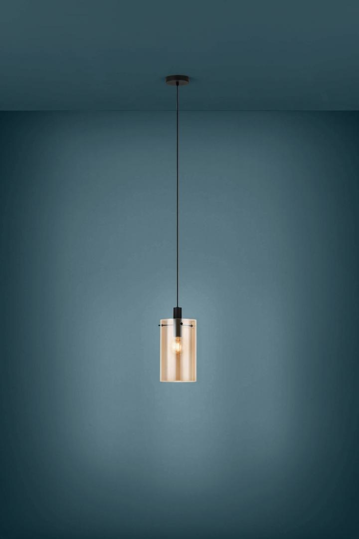 De 1-lichts hanglamp Polverara van Eglo heeft amberkleurig glas. Het amberkleurige glas geeft de lamp een chique en warme look.
