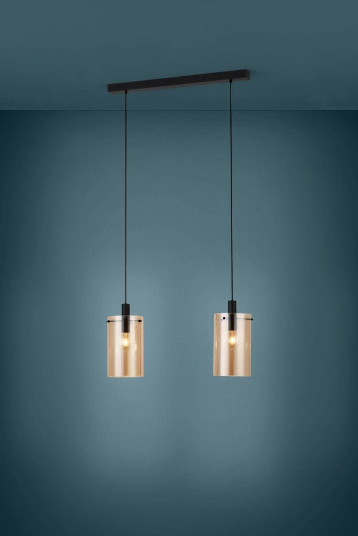 De 2-lichts hanglamp Polverara van Eglo heeft amberkleurig glas. Het amberkleurige glas geeft de lamp een chique en warme look.