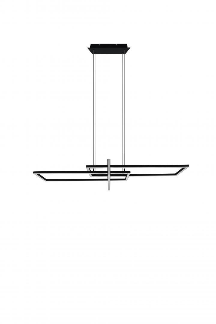 De Salinas serie van Trio Leuchten bestaat uit modern vormgegeven hanglampen en plafondlampen in drie verschillende kleuren. Deze hanglamp bestaat uit verschillende rechthoekige vormen gecombineerd tot een geheel. De lamp heeft daardoor een 3D-effect en een unieke lichtverdeling. De lamp is gemaakt van metaal en afgewerkt in een matzwarte kleur. Ook verkrijgbaar in het goud met zwart en staalkleurig.