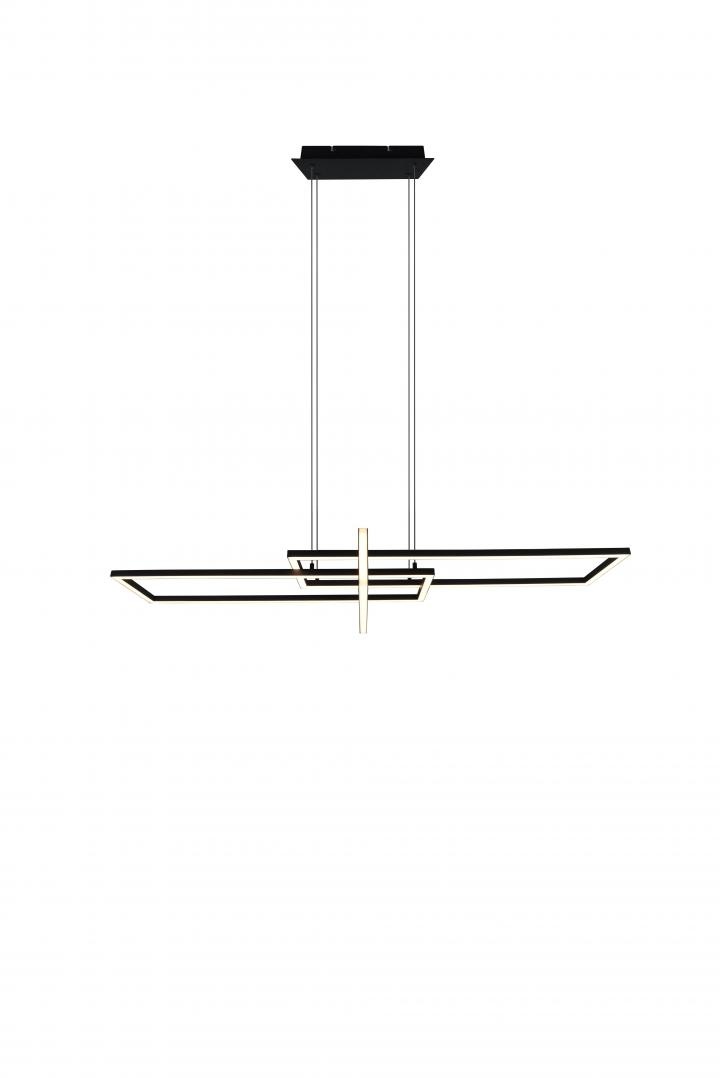 Deze moderne hanglamp bestaat uit verschillende rechthoekige vormen gecombineerd tot een geheel. De lamp heeft daardoor een 3D-effect en een unieke lichtverdeling.