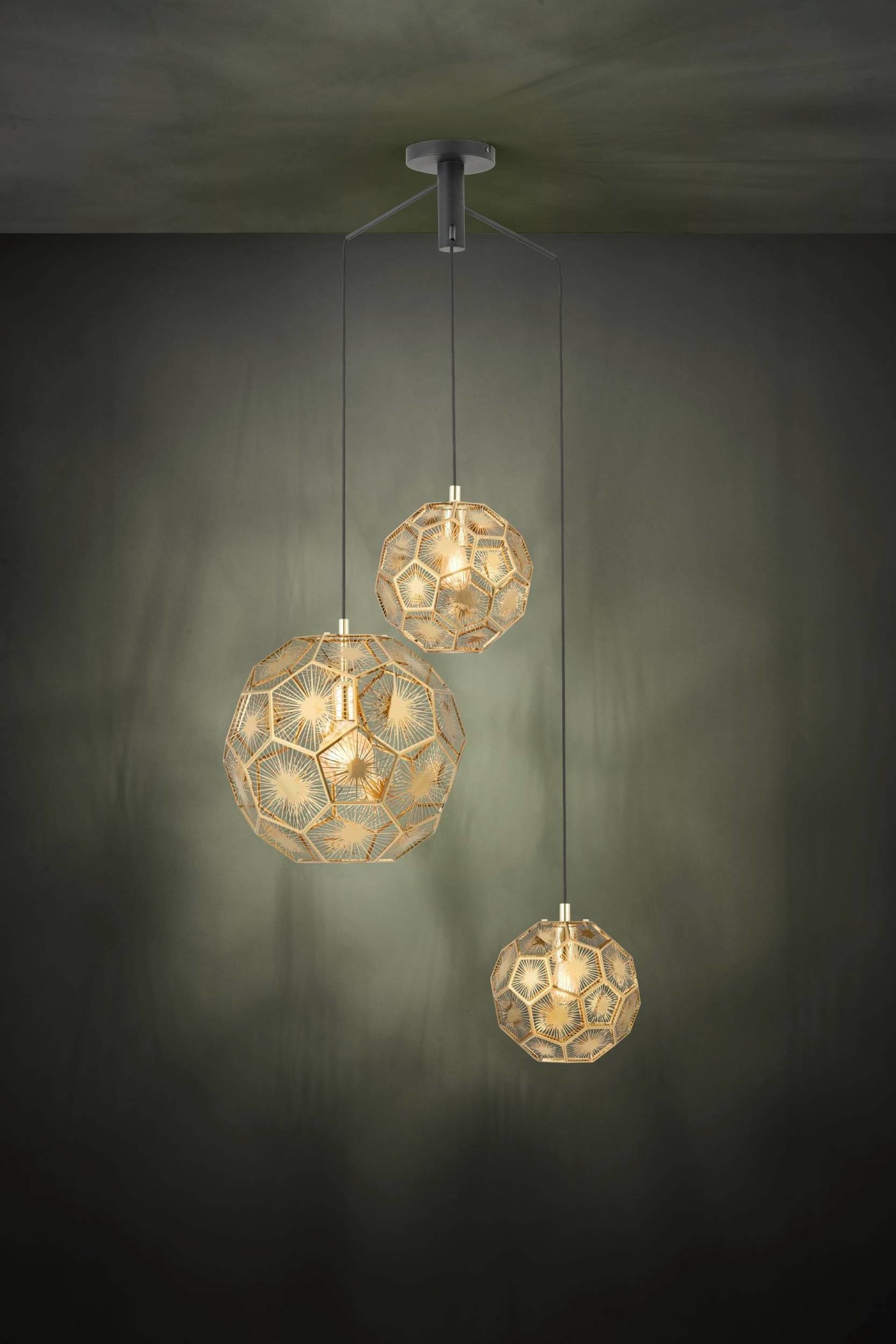 De hanglamp Skoura 3lichts Zwart met goud (messing) maakt deel uit van de Stars of Light collectie van Eglo.