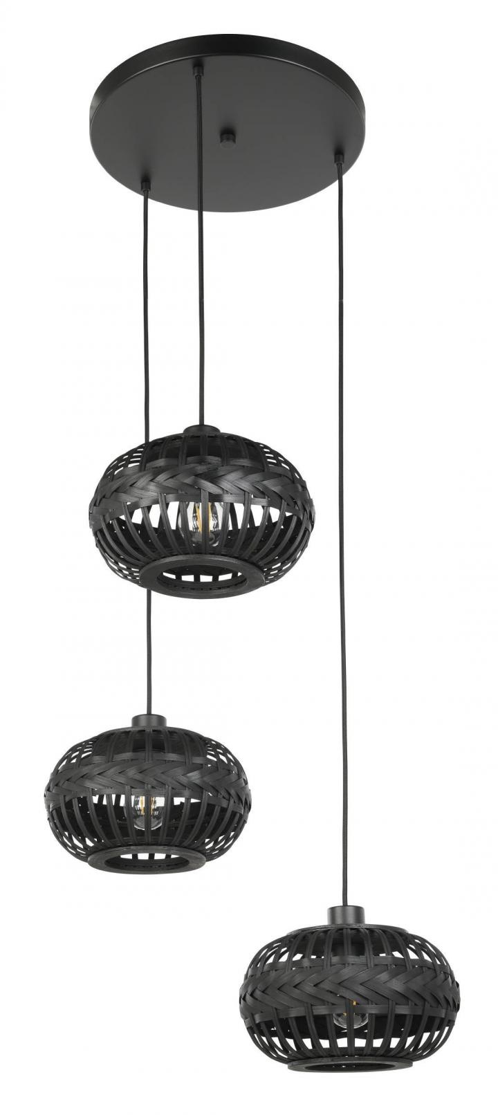 De 3-lichts hanglamp met een ronde plafondplaat uit de Towcester serie van Eglo heeft een natuurlijk tintje, de lampenkappen in de vorm van een gevlochten mand zorgen ervoor dat het licht op een subtiele manier reflecteert rondom de omgeving van de lamp.