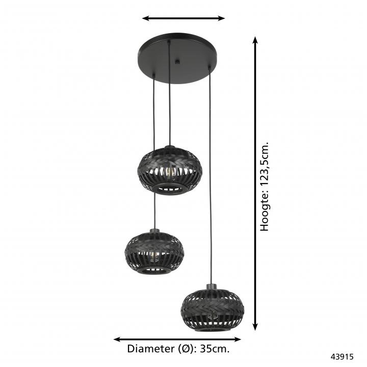 De 3-lichts hanglamp uit de Towcester serie van Eglo heeft een natuurlijk tintje, de lampenkappen in de vorm van een gevlochten mand zorgen ervoor dat het licht op een subtiele manier reflecteert rondom de omgeving van de lamp.