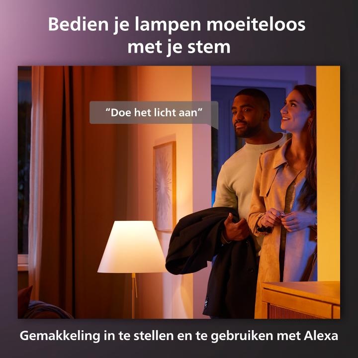 De lichtsnoeren werken samen met alle Philips Hue-producten, zodat u een scène in de kamer kunt instellen en de hele ruimte kunt zien opgaan in een perfecte harmonie van kleuren. Wanneer u één scène instelt met Festavia lichtsnoeren, verandert elke kleur op het lichtsnoer in combinatie met andere lampen in de kamer en creëert dit een harmonieuze verlichtingservaring. Ook verkrijgbaar in een langere lichtsnoer met 500 LED’s (40 meter).