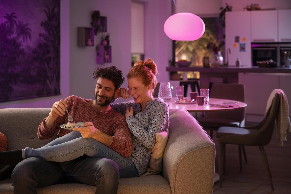 Met deze lamp kunt u kiezen uit 16 miljoen kleuren en 50.000 wittinten. Zo creëert u voor ieder moment de juiste sfeer. Pas de kleur aan aan uw gemoedstoestand. Een romantisch filmavondje met uw partner? Kies voor een warme roze tint. Gaat u iets doen waarbij concentratie vereist is, zoals studeren? Kies dan voor een koele witte lichtkleur. U kunt zelfs de kleur van het licht synchroniseren met uw muziek en films.
