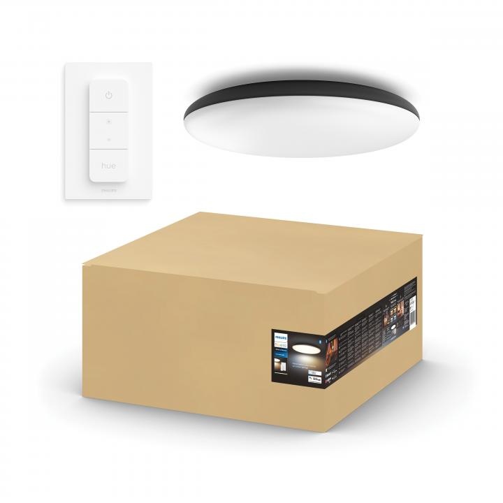 Deze plafondlamp Cher komt uit de White Ambiance serie van Philips Hue. Het is een moderne plafondlamp met een ronde vorm. Het afgeronde design zorgt voor een bredere verspreiding van het licht. De lamp heeft een diameter van 47,5 cm en een hoogte van 9,5 cm. De plafondlamp is gemaakt van kunststof en is afgewerkt in een zwarte kleur. De lamp heeft een geïntegreerde LED-lichtbron en wordt geleverd inclusief Hue Dimmer Switch, waarmee u de lamp op afstand kunt schakelen, dimmen en een lichtscène kunt kiezen.