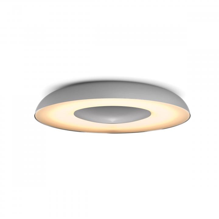Deze plafondlamp Still komt uit de White Ambiance serie van Philips Hue. Het is een lamp met een moderne uitstraling. De lamp heeft een diameter van 39,1 cm en de hoogte is 7,1 cm. De lamp is gemaakt van metaal en kunststof en is afgewerkt in een aluminiumkleur. De lamp heeft een geïntegreerde LED-lichtbron en wordt geleverd inclusief Hue Dimmer Switch, waarmee u de lamp op afstand kunt schakelen, dimmen en een lichtscène kunt kiezen.