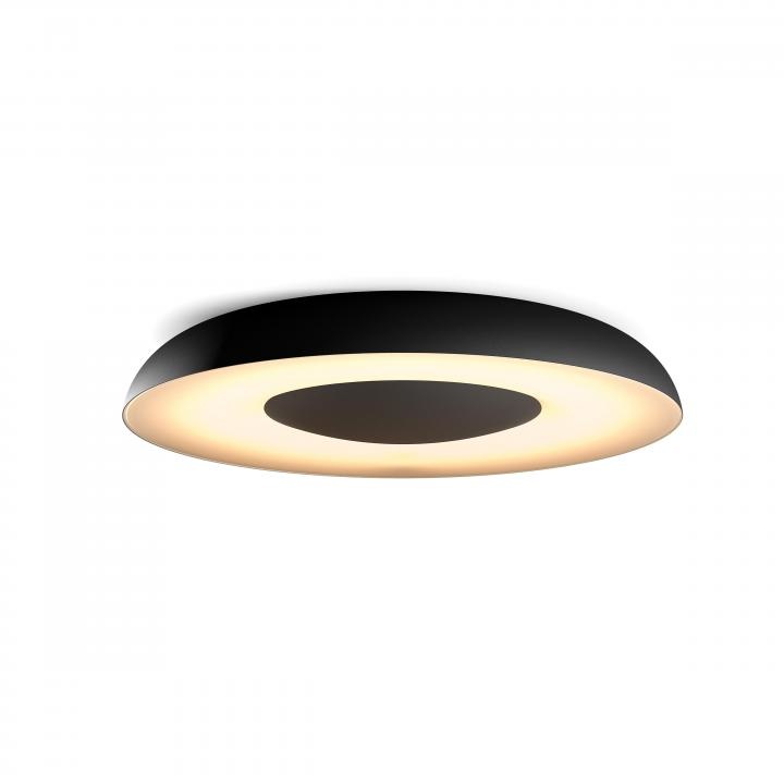 Deze plafondlamp Still komt uit de White Ambiance serie van Philips Hue. Het is een lamp met een moderne uitstraling. De lamp heeft een diameter van 39,1 cm en de hoogte is 7,1 cm. De lamp is gemaakt van metaal en kunststof en is afgewerkt in een matzwarte kleur. De lamp heeft een geïntegreerde LED-lichtbron en wordt geleverd inclusief Hue Dimmer Switch, waarmee u de lamp op afstand kunt schakelen, dimmen en een lichtscène kunt kiezen.