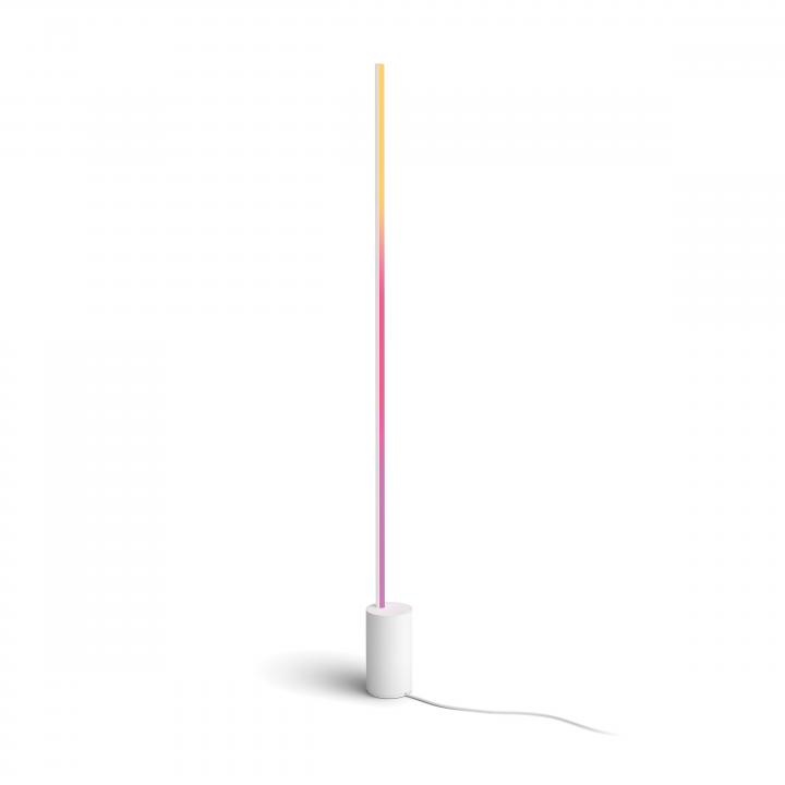 Deze vloerlamp Gradient Signe komt uit de White and Color Ambiance serie van Philips Hue. Het is een mooie slanke en moderne vloerlamp met veel mogelijkheden. U kunt zowel sfeer creëren als de lamp gebruiken voor entertainment.