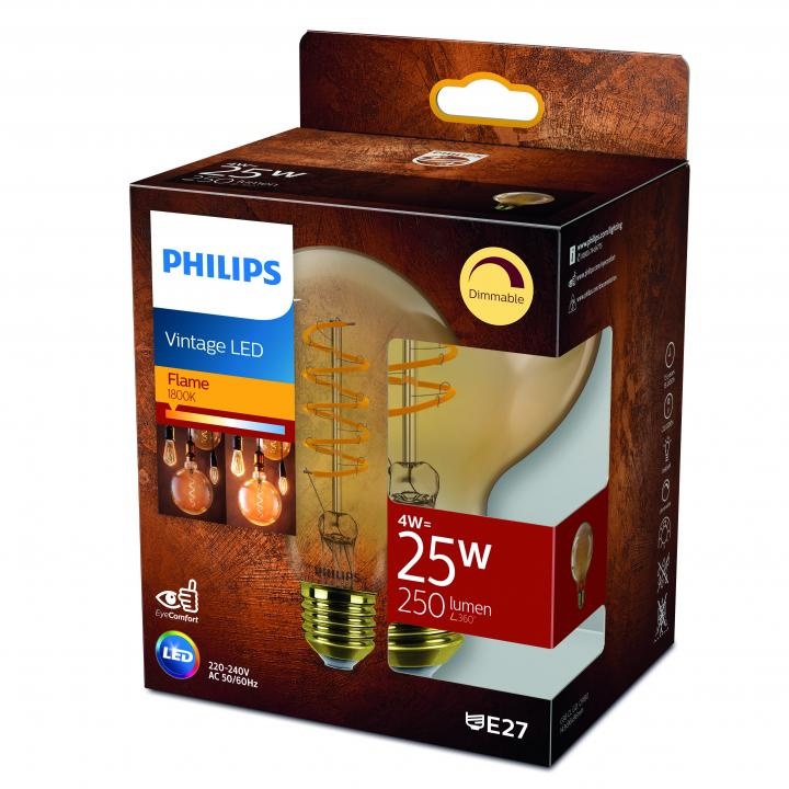 Deze Gouden Globe lichtbron is dimbaar en beschikt over 4 Watt, 250 Lumen en 1800 Kelvin.