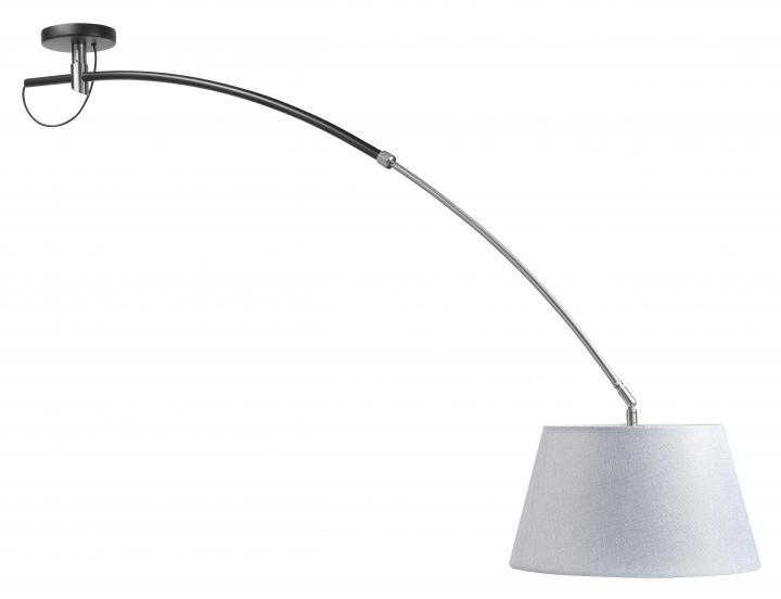Schitterende plafondlamp uit de Arc serie van Highlight. Deze bijzondere hanglamp is draaibaar en uitschuifbaar. Hierdoor kunt u de lamp in elke gewenste richting draaien en verstellen. Deze metalen lamp is uitgevoerd in het zwart en nikkel. De linnen kap is in een grijs taupe kleur uitgevoerd. Elegant en ideaal te verstellen.