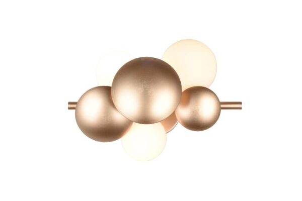 De TRIO Select plafondlamp Bubble is een prachtige ontwerp met allerlei ‘bubbels’ erin verwerkt. De plafondlamp heeft een metalen armatuur met een gouden afwerking, wat een luxe en stijlvolle uitstraling geeft aan het geheel.