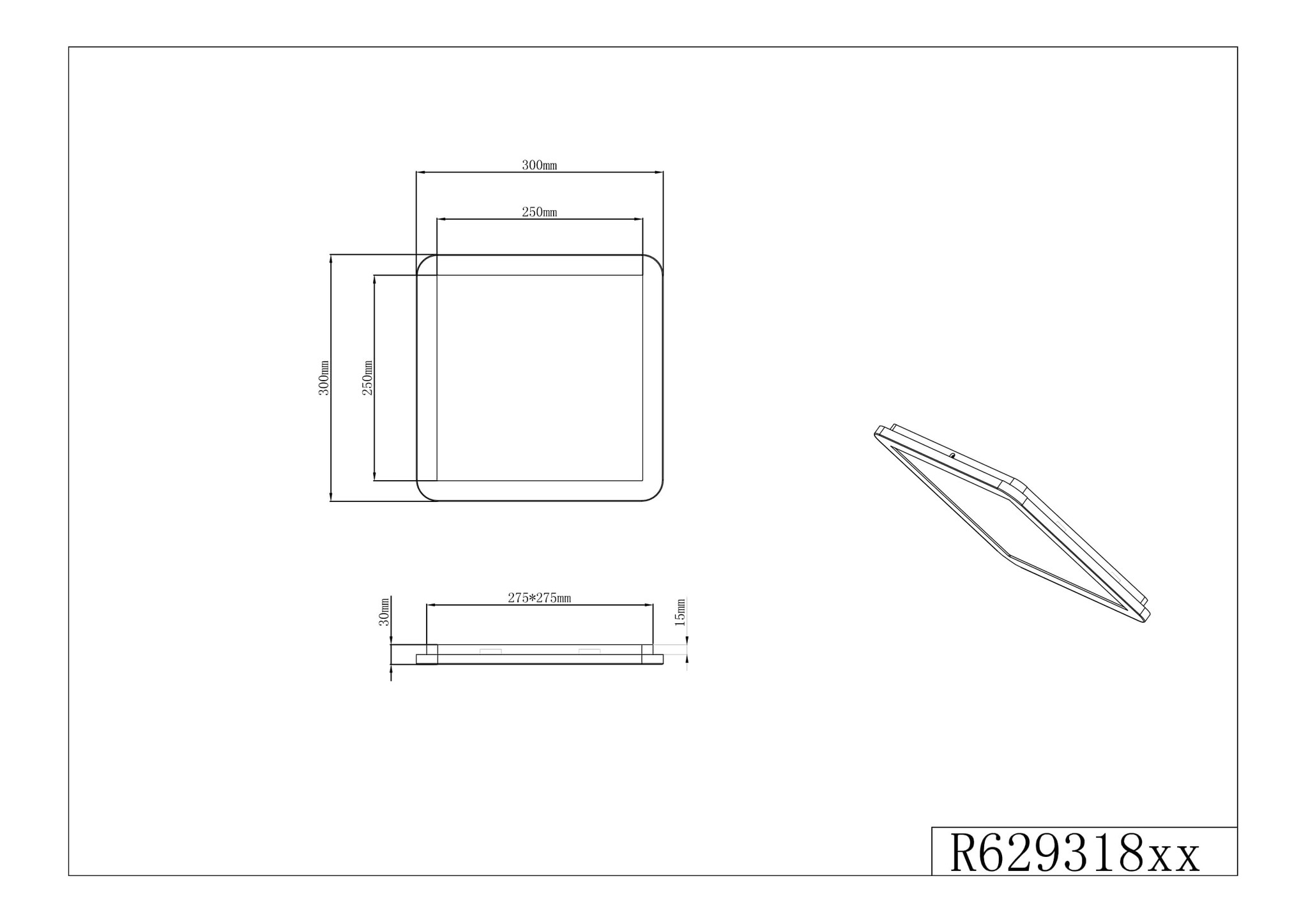 De lamp 30 bij 30 cm en komt 3 cm van het plafond af. De lamp is voorzien van een 18Watt LED module met een witte kleur van 3000K (1650Lm).