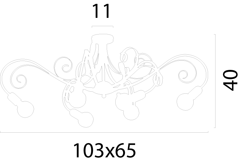 De plafondlamp is uitgerust met een 6 x E27 fitting (lichtbron exclusief). De plafondlamp is eventueel dimbaar met een externe muurdimmer (exclusief). De lamp heeft een breedte van 103cm en een diepte van 65cm. De plafondlamp komt 40 cm van het plafond af.