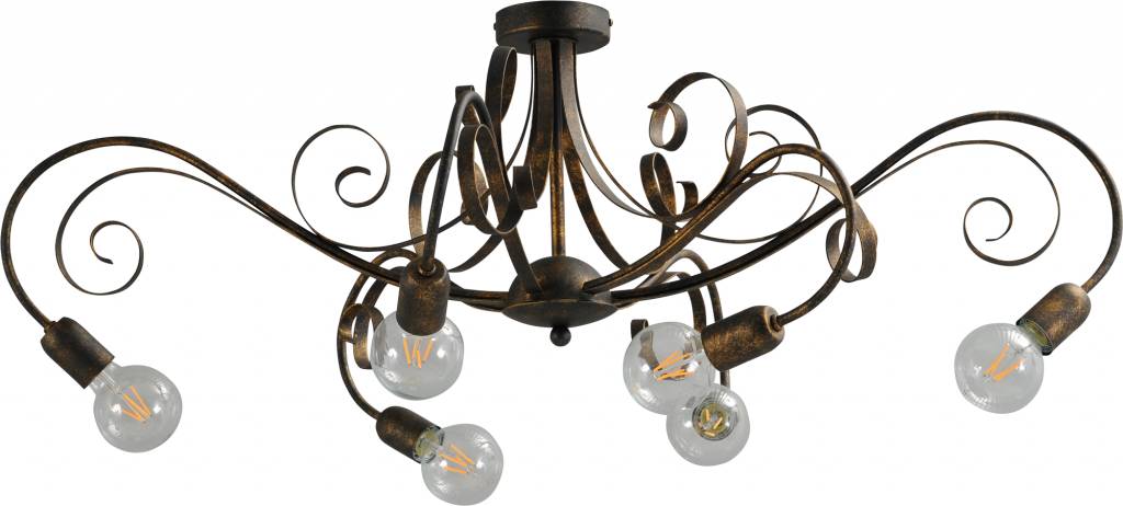 Plafondlamp Curlie zwart/goud gepatineerd 6lichts