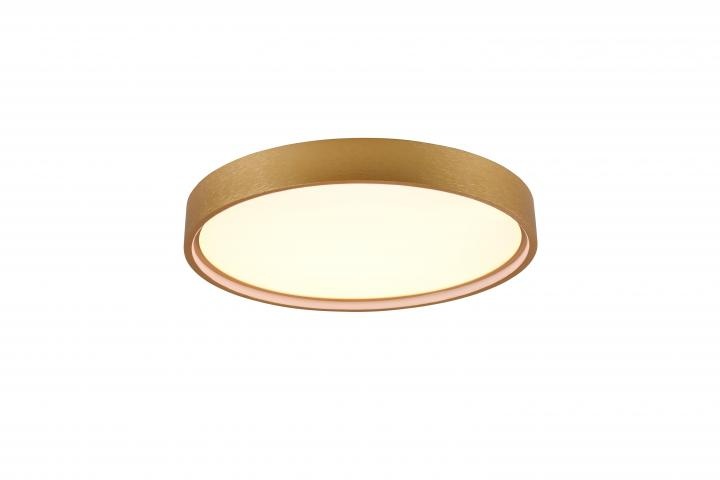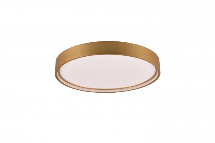 De TRIO plafonnière Doha is een handige lamp die je aan het plafond kunt bevestigen. Het wordt geleverd met een krachtige LED-lichtbron van 29 watt. De LED-lamp biedt verschillende kleurtemperaturen, namelijk 2300K, 3000K en 4000K, en heeft een totale lichtopbrengst van 3260 lumen. Dit zorgt voor voldoende helderheid in de ruimte. De Doha plafonnière heeft een eenvoudig ontwerp en heeft een matte messing kleur. Het heeft een diameter van 45 cm en een hoogte van 5,5 cm. Het is compact en past goed bij verschillende interieurstijlen.
