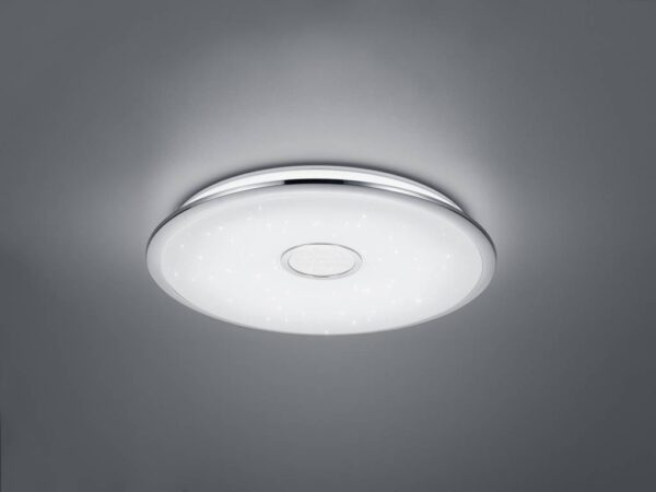 De plafondlamp heeft een diameter van 40 cm en komt 17 cm van het plafond af. De lamp is geschikt voor een E27 lichtbron van maximaal 60W (exclusief). De lamp is eventueel dimbaar met een externe dimmer (exclusief).