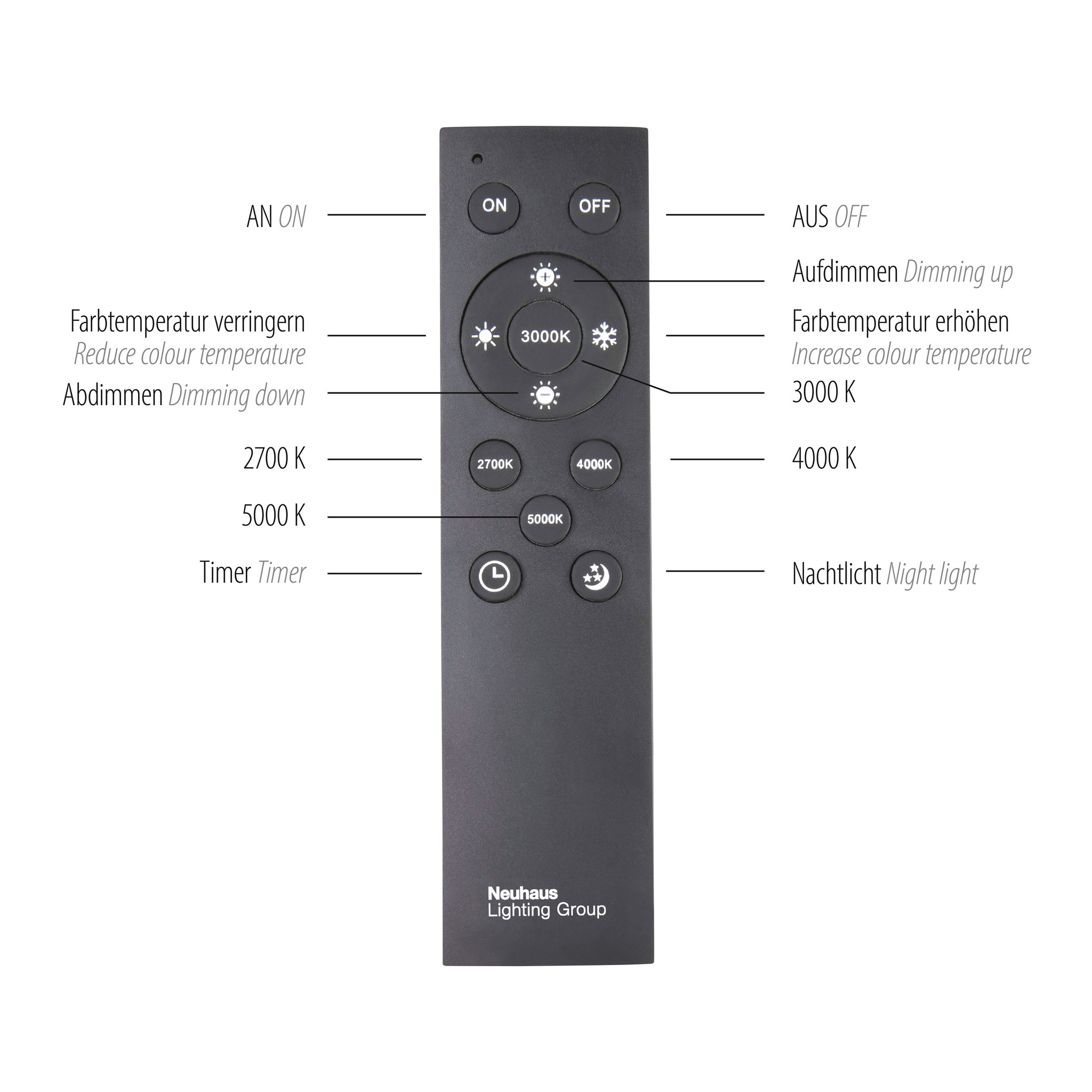 Minimalistische plafondlamp uit de Pure-Lines serie van Paul Neuhaus, bedien de lamp gemakkelijk met de meegeleverde afstandsbediening.