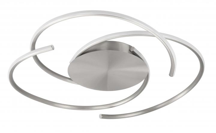 De plafondlamp komt uit de Reverso – serie van Highlight. De plafondlamp is gemaakt van aluminium en kunststof. De lamp is uitgevoerd in het nikkel mat.