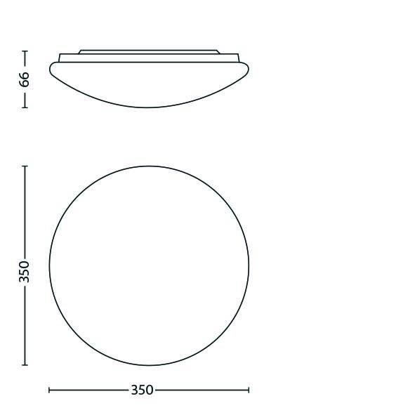 Deze plafondlamp is gemaakt van kunststof en uitgevoerd met een witte rand. De lamp heeft een diameter van 35 cm en heeft een hoogte van 6.6 cm. De plafondlamp weegt 2.65 kg. Is te bedienen middels een reguliere wandschakelaar (exclusief). Wordt geleverd inclusief lichtbron van 17 Watt, 2700 Kelvin en 1600 Lumen. Deze plafondlamp heeft een CRI waarde van 80.