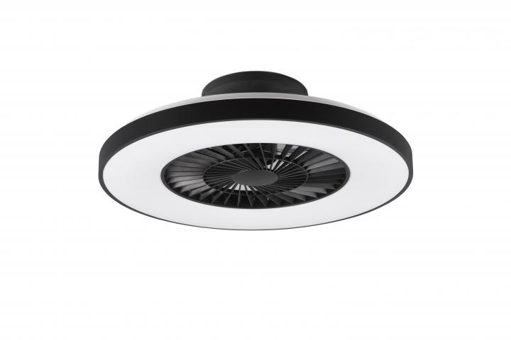 Heerlijk verkoelend! Mooie zwarte plafondventilator uit de Halmstadt serie van Trio-Leuchten. Deze schitterende plafondventilator beschikt over een ventilator met 3 snelheidsstanden en een timer. De lamp is dimbaar en in lichtkleur instelbaar. Van warm geel licht naar koel wit licht. Daarnaast heeft de ventilator een nachtlamp. De plafondventilator is te bedienen met een afstandsbediening.