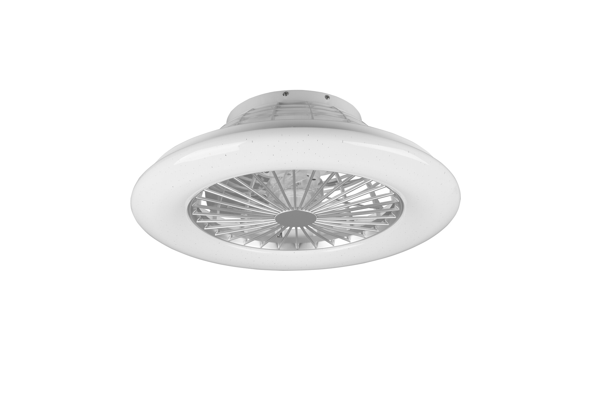De plafondventilator is gemaakt van kunststof en heeft een diameter van 50 cm en is 16.8 cm hoog. De geïntegreerde LED lichtbron heeft een vermogen van 26.8 Watt, de lichttemperatuur is instelbaar van 3000 tot 6500 Kelvin en heeft een lichtsterkte van 2600 Lumen. De ventilator wordt geleverd met en afstandsbediening. Ook te verkrijgen in een zwarte uitvoering.