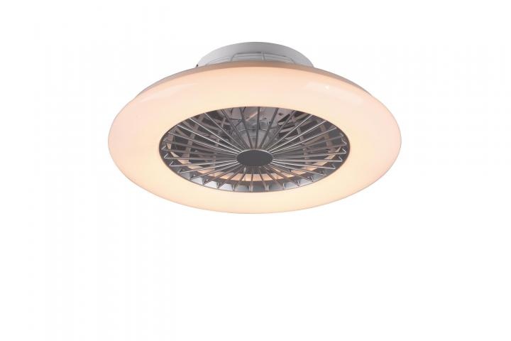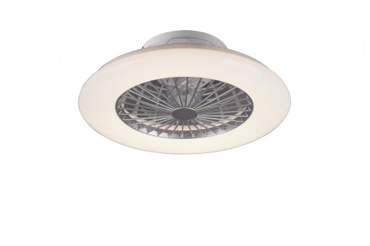 De plafondventilator is gemaakt van kunststof en heeft een diameter van 50 cm en is 16.8 cm hoog. De geïntegreerde LED lichtbron heeft een vermogen van 26.8 Watt, de lichttemperatuur is instelbaar van 3000 tot 6500 Kelvin en heeft een lichtsterkte van 2600 Lumen. De ventilator wordt geleverd met en afstandsbediening. Ook te verkrijgen in een zwarte uitvoering.
