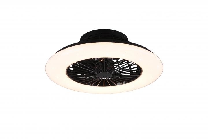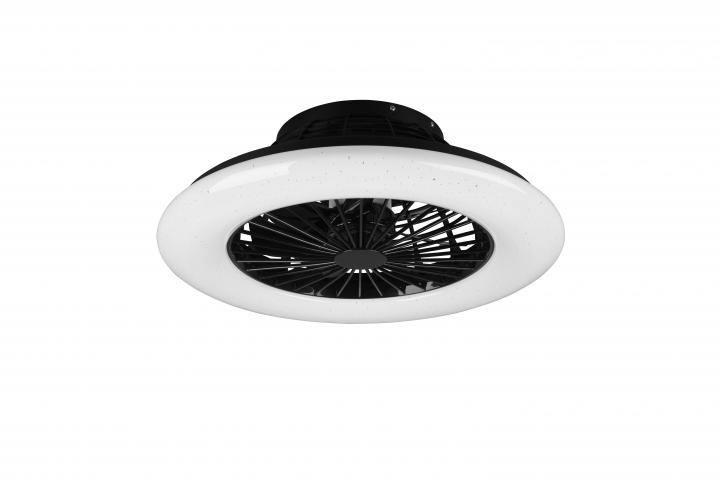 Heerlijk verkoelend! Mooie zwarte plafondventilator uit de Stralsund serie van Trio-Leuchten. Deze schitterende plafondventilator beschikt over een ventilator met 3 snelheidsstanden en een timer. De lamp is dimbaar en in lichtkleur instelbaar. De lamp heeft een leuk starlight effect. Van warm geel licht naar koel wit licht. Daarnaast heeft de lamp een nachtstand. De plafondventilator is te bedienen met een afstandsbediening.