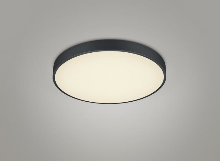 De plafondlamp heeft een diameter van 49,5 cm en hangt 6,5 cm van de plafond af. Deze lamp wordt geleverd met een LED lichtbron van 52,5 Watt en door middel van de DIP Switch kunnen er 3 lichtkleuren (warm wit 2300K, neutraal wit 3000K en daglicht wit 4000K) via een schakelaar direct op de lamp ingesteld worden. De lichtsterkte kan met een extern schakelaar (exclusief) traploos gedimd worden.